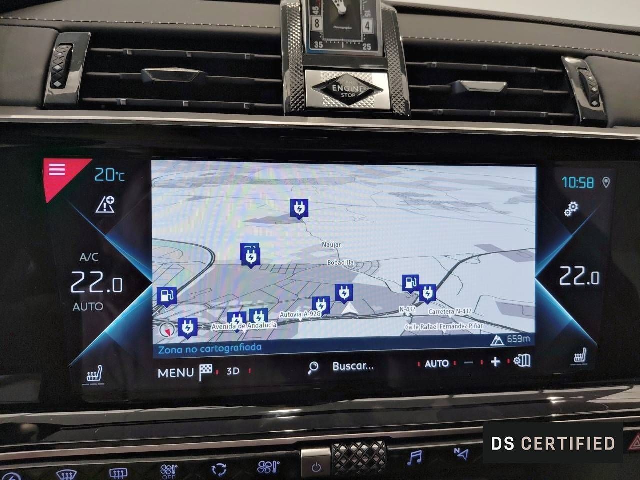 Navegador con datos vía memoria interna/disco duro y pantalla a color de 12,0 " con información en 3D y con voz, control mediante pantalla táctil y información de tráfico 30,5 y 0